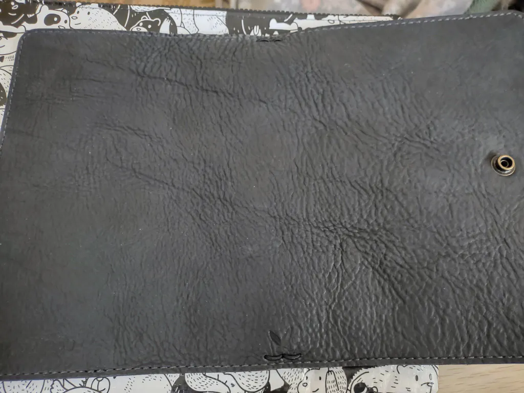 Campfire is a full grain, chrome tanned leather with a soft, supple feel and a semi-textured matte finish. It has a slightly thicker build, giving it a grounded, durable structure without feeling stiff.